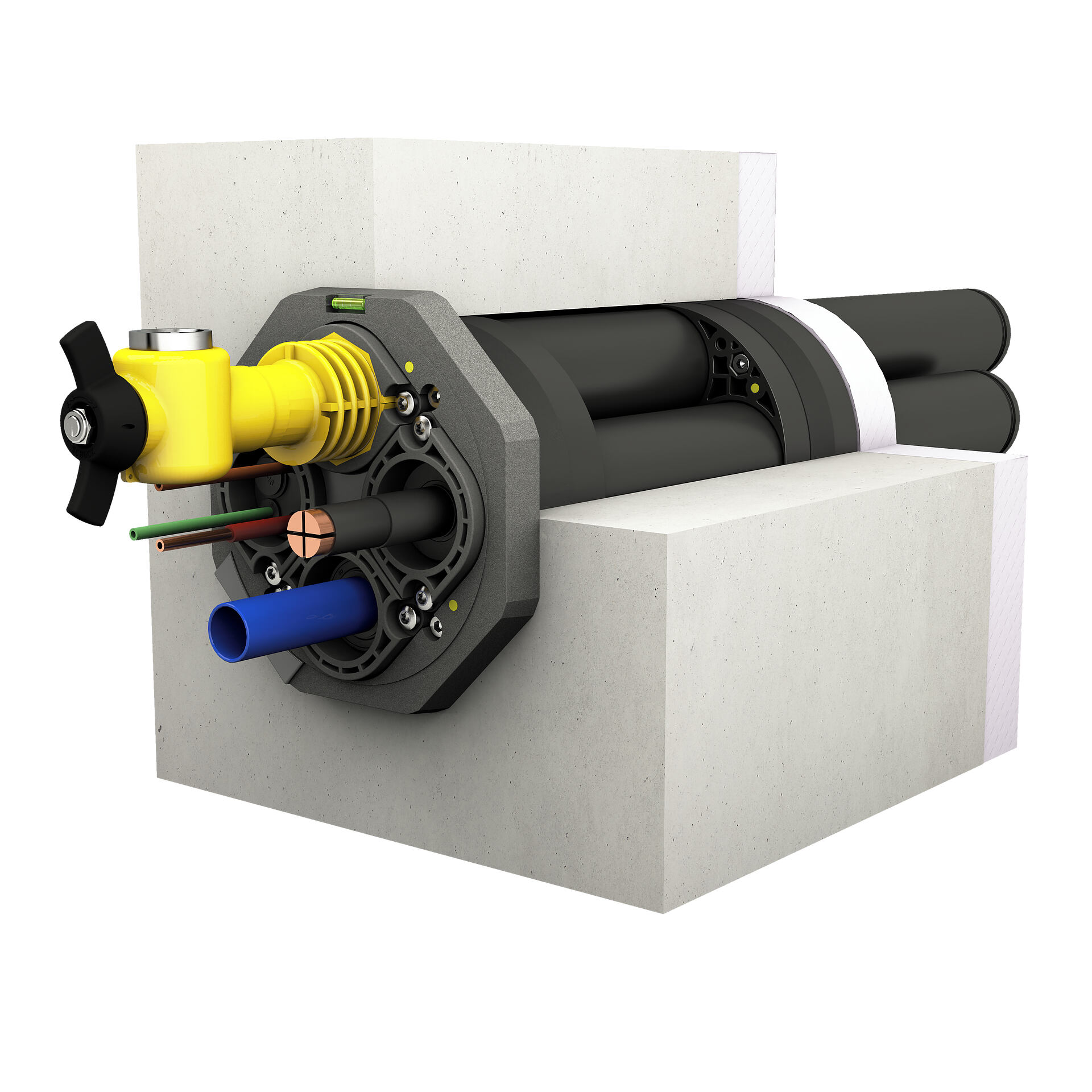 Outer sealing element to supplement multi-line building entry PolySafe for buildings without waterproofing.