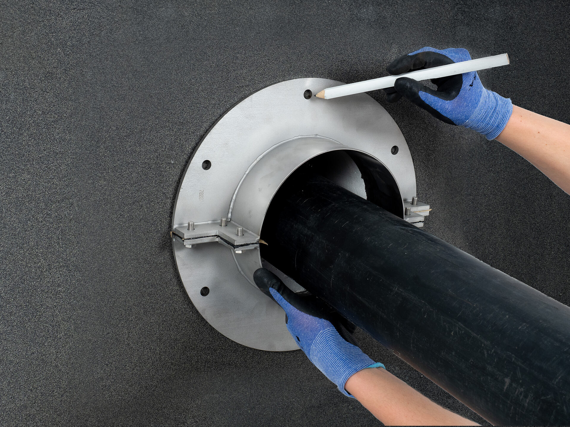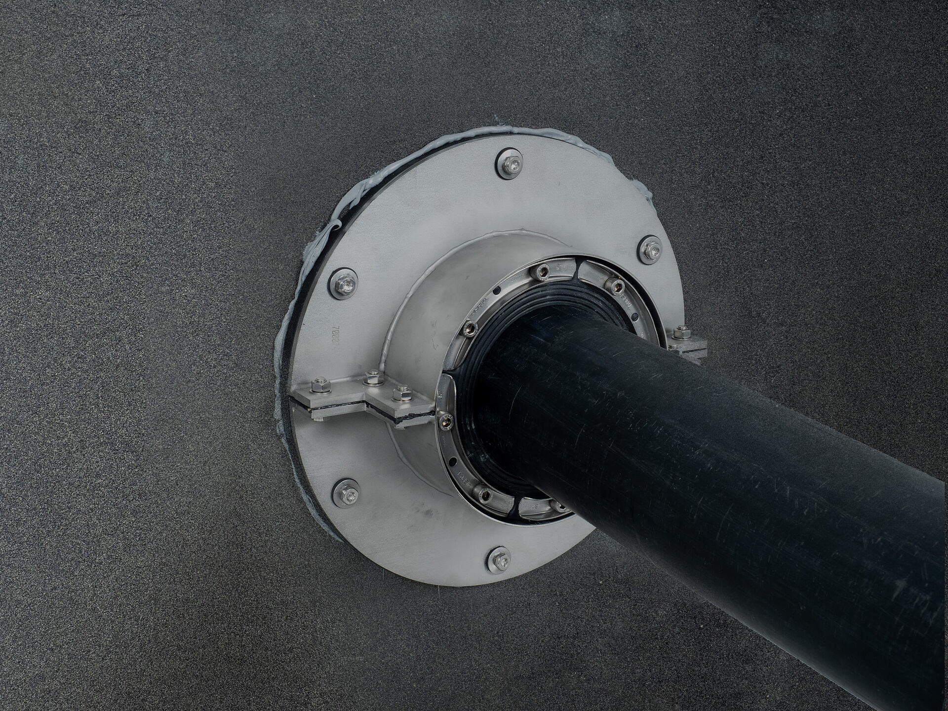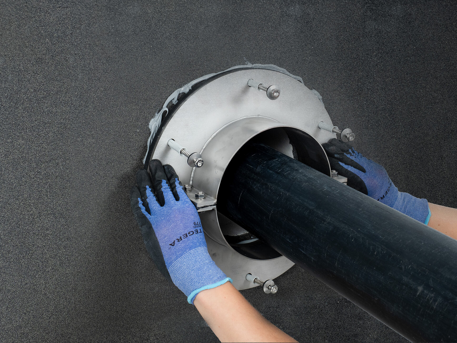 The flange is supplied in square design up to wall sleeve inner diameter 150 mm and in round design from wall sleeve inner diameter 200 mm.