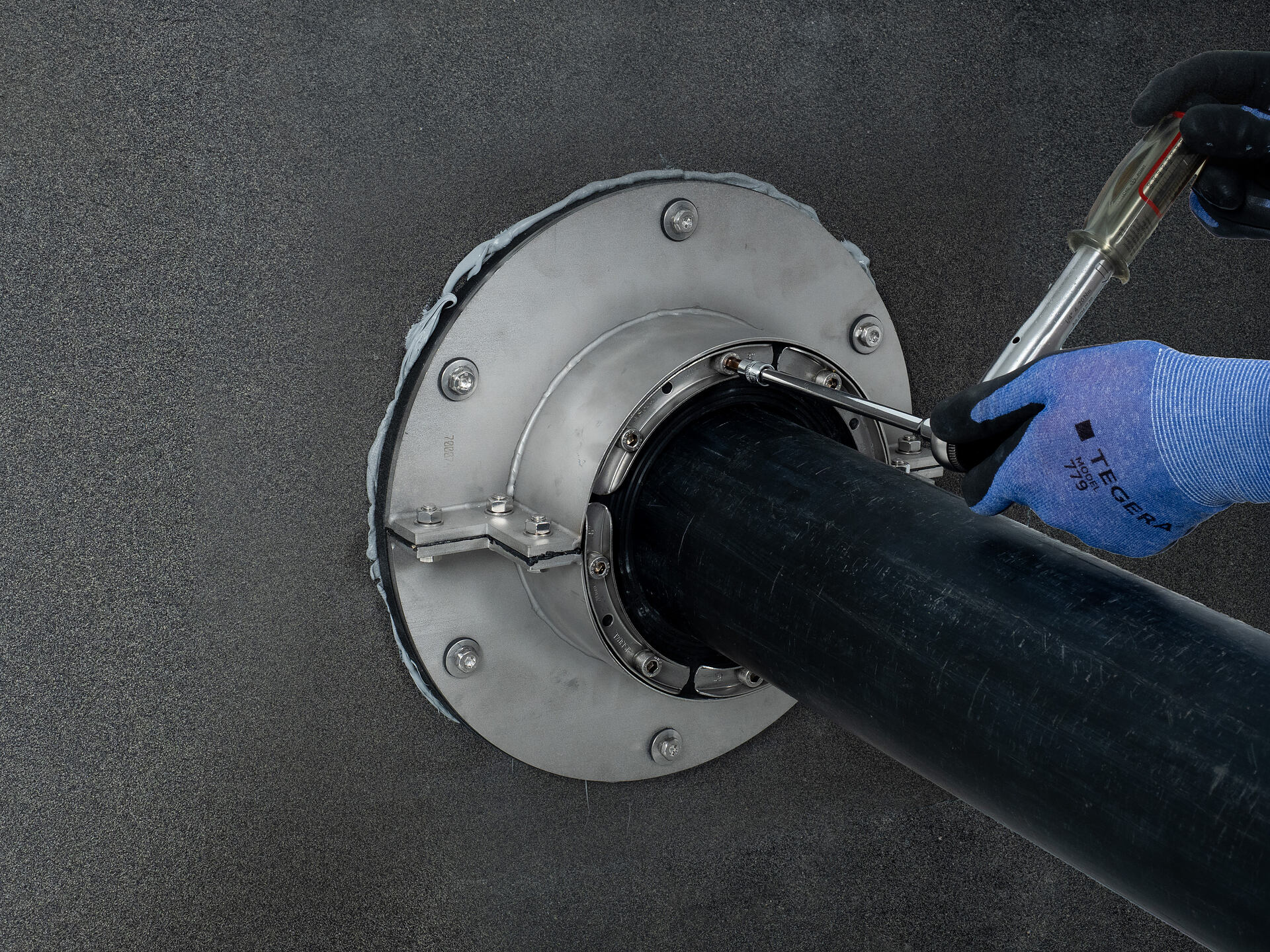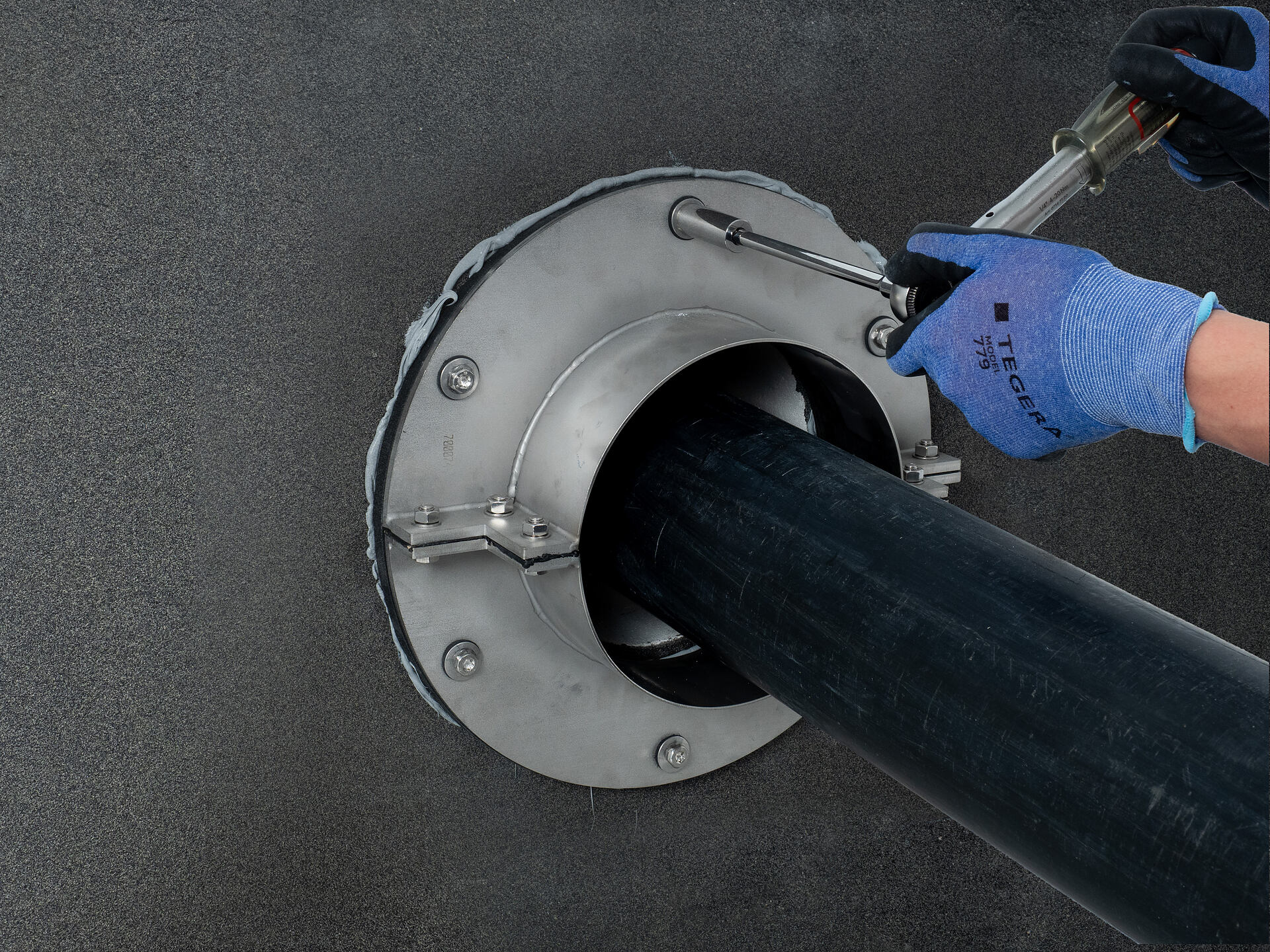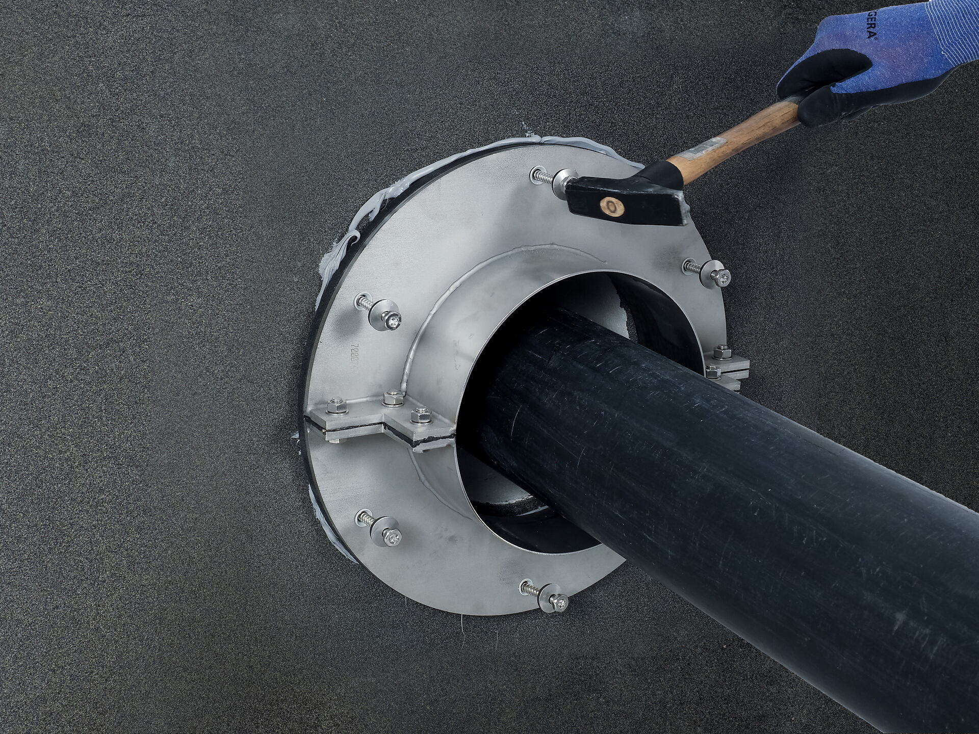 The flange is supplied in square design up to wall sleeve inner diameter 150 mm and in round design from wall sleeve inner diameter 200 mm.