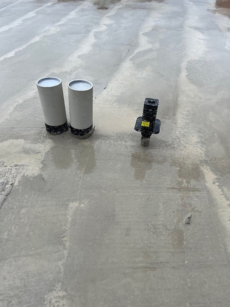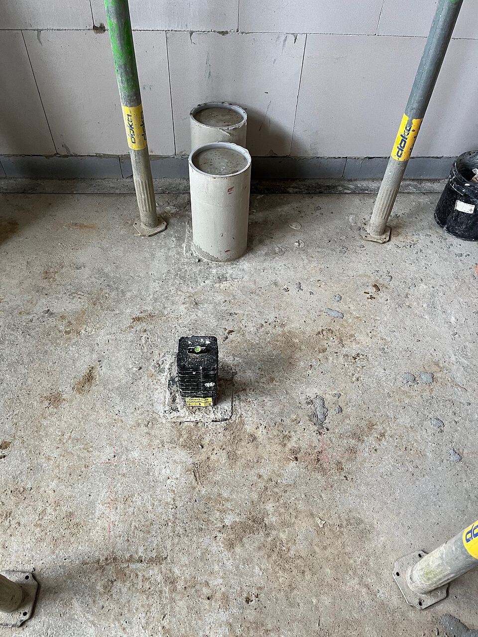 Eingebaute Hauseinführungen in der Bodenplatte des Rohbaus.