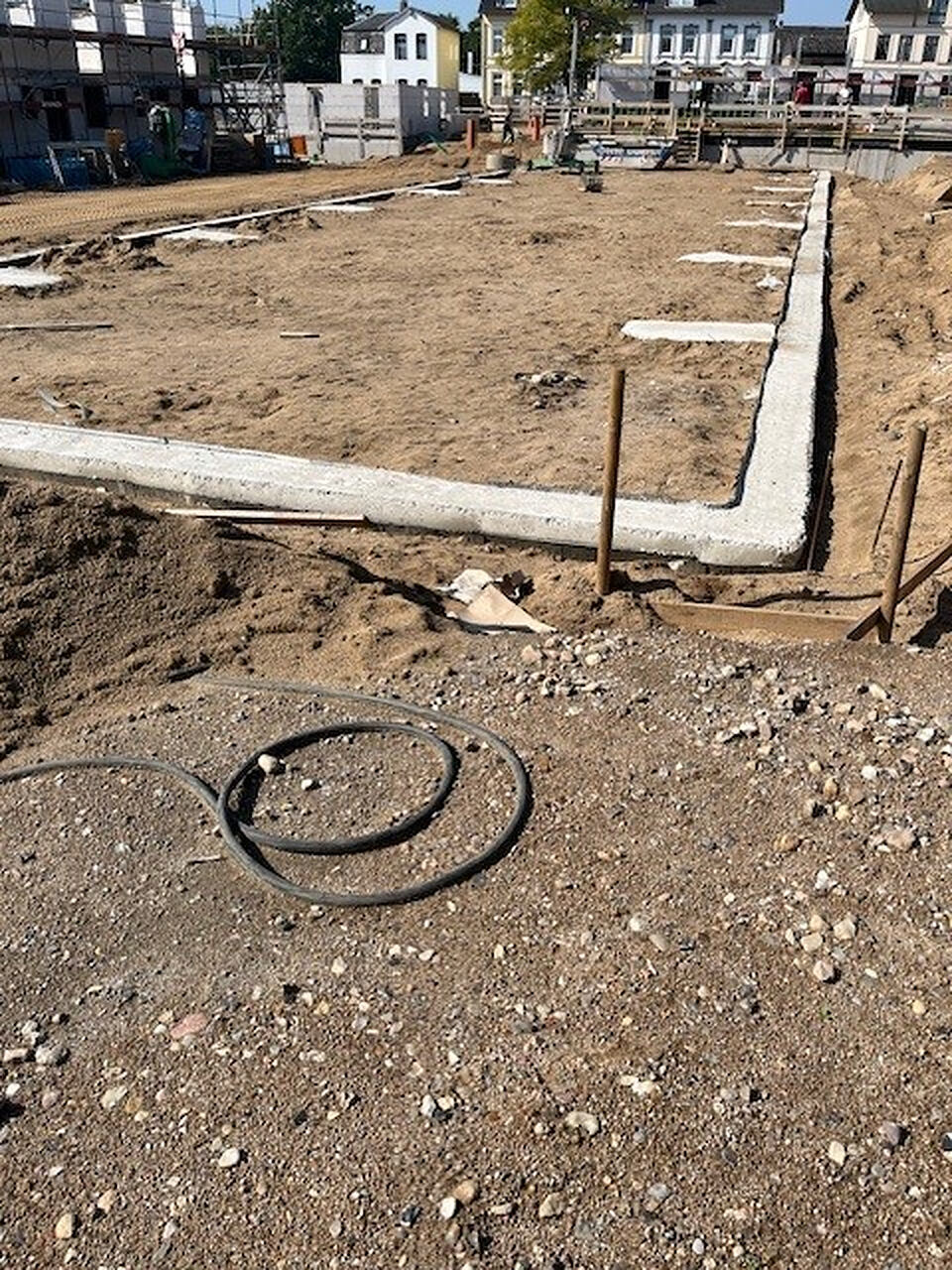 Vorbereitetes Streifenfundament für die Bodenplatte eines der neuen Gebäude.