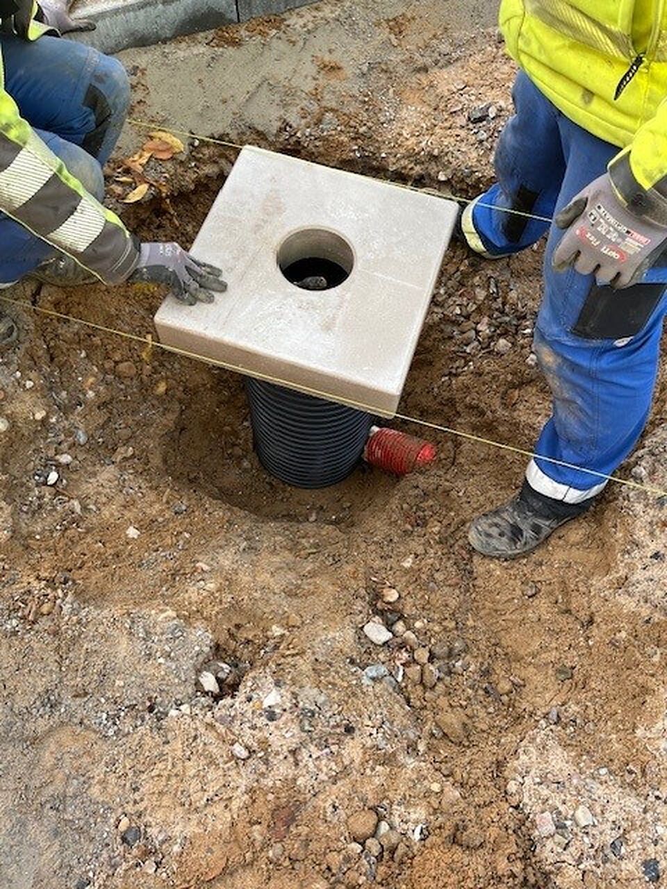 Damit die vorbereitete Stromzufuhr bis dahin sicher und geschützt sowie vor dem Zugriff Dritter gesichert bleibt, kam der Prototyp unseres jetzigen ULF Verschlussdeckels zum Einsatz.