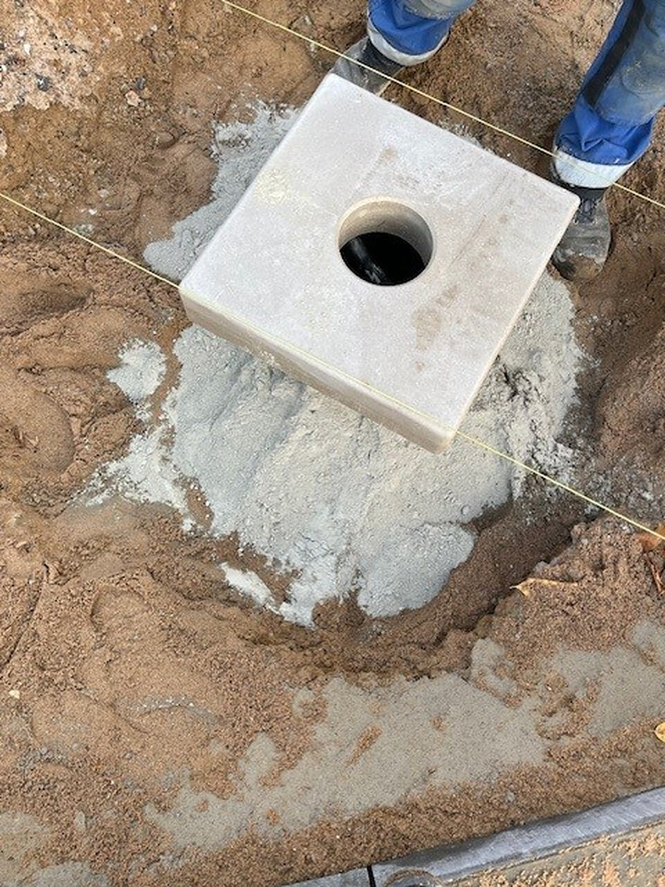 Durch eine Betonfertigmischung am Fundamentfuß erhält unsere Lösung eine zusätzliche Festigkeit.