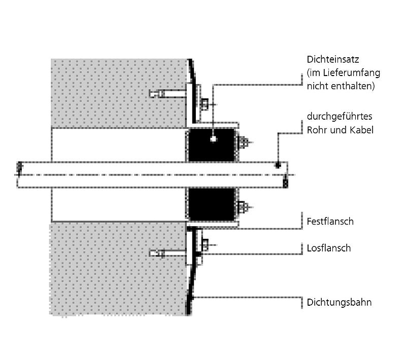 D1: Futterrohr Øi, D2: Festflansch Øa, D3: Losflansch Øa